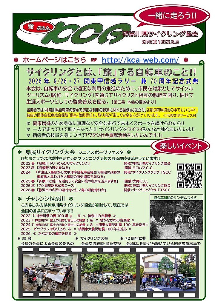 【お問合せ】から神奈川県サイクリング協会・事務局までご連絡ください。